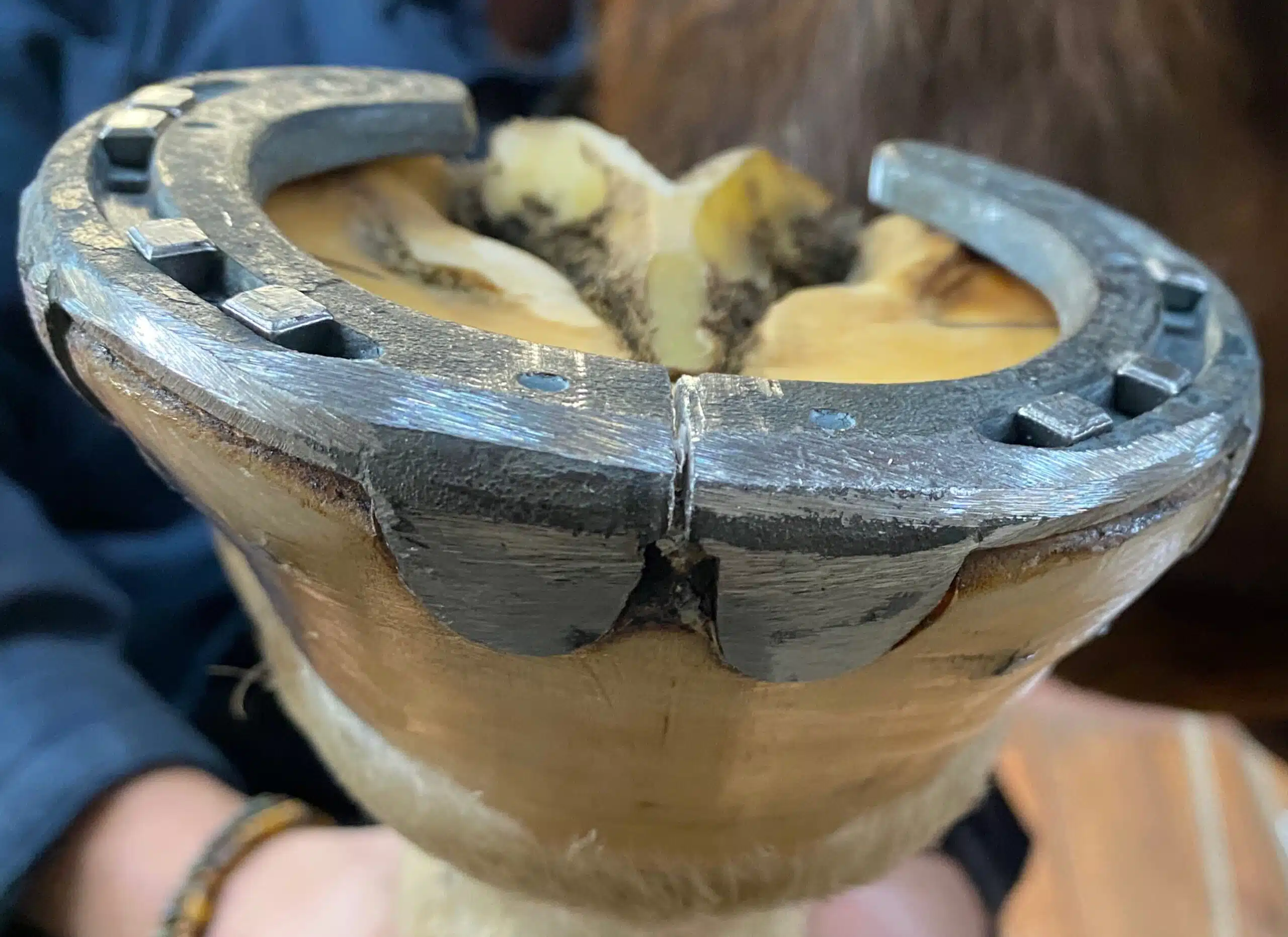 Hoof capsule distortions indicate that the hoof wall is unduly stressed due to abnormal distribution of forces which may cause flares, sheared heels, underrun heels, cracks, etc…